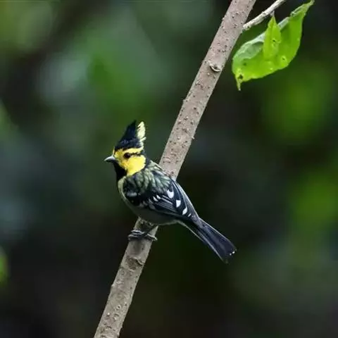 台湾黄山雀体长约13厘米。头顶至后颈黑色,有一长的黑色羽冠,羽冠末端和后颈中央白色。背苍绿色,…