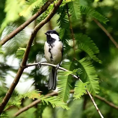 褐头山雀:共有14个亚种,是一种小型的山雀。头顶及颏褐黑,上体褐灰,颊白,颏和喉黑色,下体近白,…