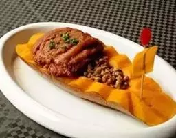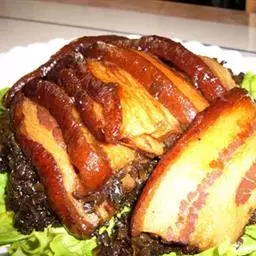 梅菜扣肉,汉族传统名菜,属客家菜 。制作材料有五花肉、梅菜、葱白、姜片等。