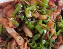 椒麻牛肉,是一道家常菜,制作原料主要有红辣椒、青辣椒、牛里脊。