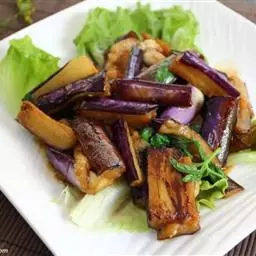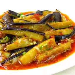 特 点: 茄子软烂,味道香美。 制作关键: 茄子切块后,放在太阳光下先晾晒1~2小时,这样炸时省油。炸茄子要用旺火热油炸,炸时要勤翻动,以免炸糊,但也不要未炸上色就捞出。