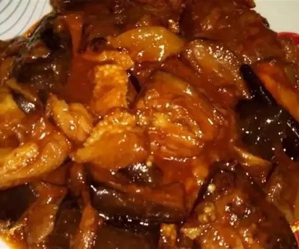 酱烧茄子的做法 1.将茄子削去皮,切成2厘米见方的,表面切十字花刀、葱、姜、蒜切片待用。 2.将油下锅烧热后,下入茄子炸成金黄色捞出。 3.将锅中油倒出,留少许底油,把葱姜,蒜和甜面酱一同下锅煸炒,待出香味时放入适量清水,随时把茄子、白糖、精盐、味精、酱油一同放入,烧开、移至小火,待茄子烧透,勾入水淀粉烧开即成。