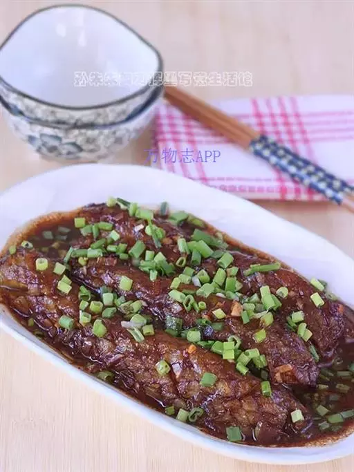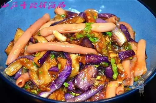 【配方】茄子5个,猪肉70克,酱油10克。
