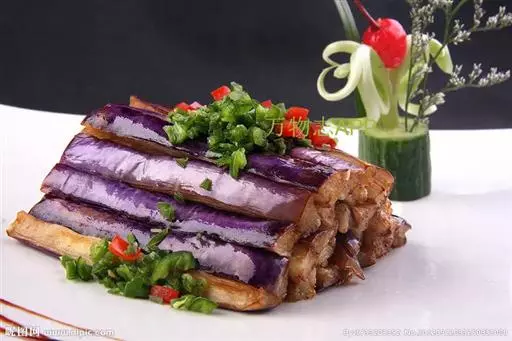 【用法】茄子洗净切成4份,浸泡在水中去除异味,捞出沥水,将油锅烧至八成热时,放人茄子,炒去水分备用。猪肉切成丝浇上酱油淀粉,大蒜捣泥,将锅烧热放人大蒜炒至渗出香味,放人猪肉、葱、茄子等翻炒至熟,加少许醋和味精,即可出锅,佐餐。