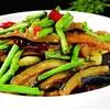辅料:豆腐干30克,冬笋25克,香菜3克 素烧茄子