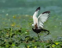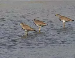 凤头距翅麦鸡(学名:Vanellus chilensis):属于中型涉禽,共有4个亚种。体长32-38厘米,体重280-425克。头部有棕黑色小羽冠,与鸻类相比,体型较大,腿较长。鼻孔线形,位于鼻沟里;鼻沟的长度超过嘴长的一半;翅形圆;有后趾,很小或者萎缩。