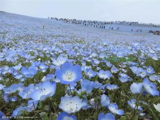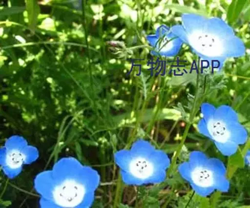 喜林草,Nemophila menziesii,是加利福尼亚一种通常野花。花色有红、黄、橙黄和蓝、白相间,亦有带紫色斑点者。