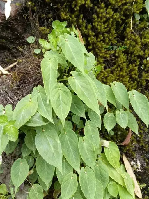滴水珠(学名:Pinellia cordata N. E. Brown)是天南星科半夏属植物。块茎球形、卵球形至长圆形,长2-4厘米,粗1-1.8厘米,表面密生多数须根。叶1,叶柄长12-25厘米。幼株叶片心状长圆形,长4厘米,宽2厘米。花序柄短于叶柄,长3.7-18厘米。佛焰苞绿色,淡黄带紫色或青紫色。花期3-6月,果8-9月成熟。