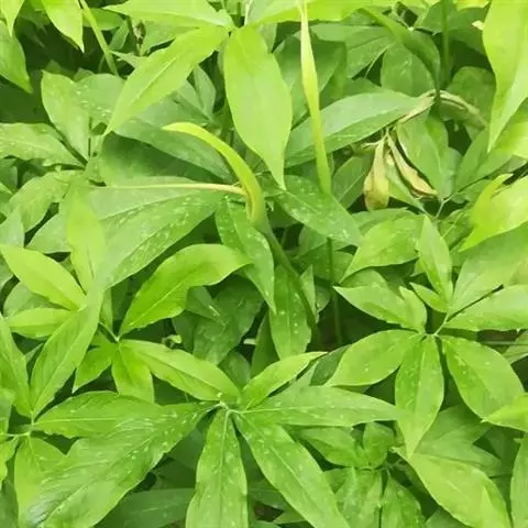 养护:滴水珠种苗定值后每年6月份在垄上施洒一层30厘米厚的混合肥料,混合肥料由腐殖土、豆秸粉、草木灰、蛋壳粉按2:0.5:1:0.1的重量比混合制成,施洒完成后浇足水;每年雨期及时做好排水措施,夏季和秋季非雨期时每隔5天浇一次水,每隔2天在叶面喷施一次叶面水,冬季和春季非雨雪期每隔7天浇一次水,定时除草,除虫害;滴水珠种苗定值2年后即可采收。