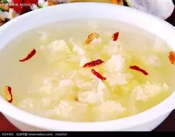 过桥豆腐是一道传统名肴,属于湘菜系。此菜柔滑细嫩,咸鲜适口,菜相美观,勾芡后,用小勺舀上一勺送入口中,…