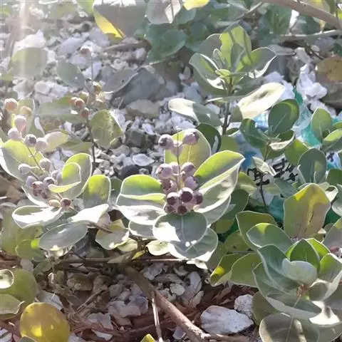 单叶蔓荆(拉汉种子植物名称)该变种主要特点:茎匍匐,节处常生不定根。单叶对生,叶片倒卵形或近圆形,顶端通常钝圆或有短尖头,基部楔形,全缘,长2.5-5厘米,宽1.5-3厘米。花和果实的形态特征同原变种。花期7-8月,果期8-10月。产辽宁、河北、山东、江苏、安徽、浙江、江西、福建、台湾、广东。生于沙滩、海边及湖畔。日本、印度、缅甸、泰国、越南、马来西亚、澳大利亚、新西兰也有分布。该变种与原变种的区别,仅在营养器官上的差异,花果特征基本相似,原变种的叶型也不稳定,不完全3小叶,有时在侧枝上可有单叶存在;而该变种通过栽培后,发现茎基部着土可生不定根,而上部消失,根据这性状我们认为作为变种处理较为合适。