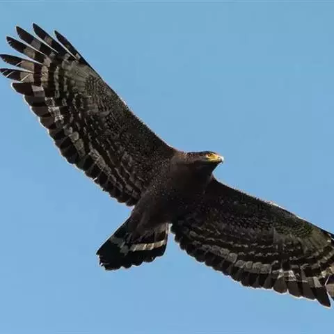 乌雕是隼形目鹰科雕属鸟类,别名有花雕、小花皂雕。通体为暗褐色,背部略微缀有紫色光泽,…