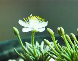 花无梗,直径4-5毫米,常3-5朵簇生枝端,午时盛开;苞片2-6,叶状,膜质,近轮生;萼片2,对生,绿色,盔形,左右压扁,长约4毫米,顶端急尖,背部具龙骨状凸起,基部合生;花瓣5,稀4,黄色,倒卵形,长3-5毫米,顶端微凹,基部合生;雄蕊通常8,或更多,长约12毫米,花药黄色;子房无毛,花柱比雄蕊稍长,柱头4-6裂,线形。