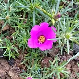 大花马齿苋:一年生草本,高10-30厘米。茎平卧或斜升,紫红色,多分枝,节上丛生毛。叶密集枝端,…