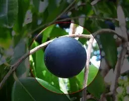 核果近球形或卵球形,直径约,毫米,黑褐色,无毛;果梗无毛;萼片宿存。花期4-5月,果期5-10月。