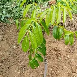 (3)小苗定植:定植方法:同大苗定植一样,注意:1起苗和定植必须十分小心,勿将根皮弄破,损坏根点;2及时用稀黄泥浆浆苗木根部,定植时不能再在穴内下肥;只需用容易发根的细红黄壤表土;3必须将土压紧覆盖树盘后,即时淋定根水,这是提高成活的关键。