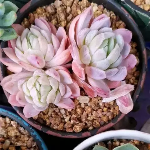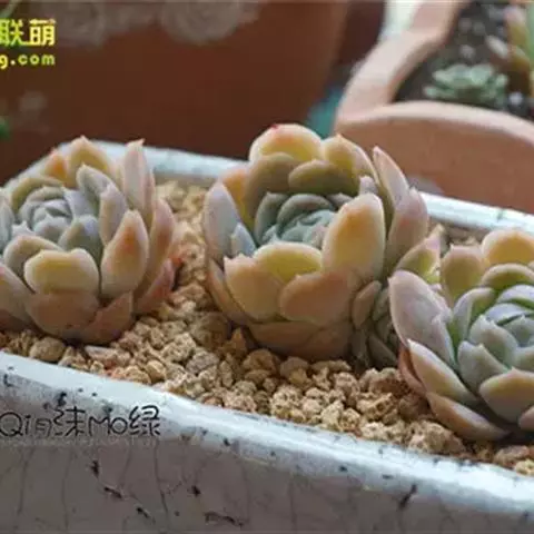 冰莓是景天科拟石莲属多肉植物。非常美的一种多肉植物,秋天的时候会变成桃红色,叶边有透明感,…