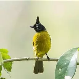 黑冠黄鹎:体长18-21厘米,是一种中等体型偏黄色鹎。整个头、颈、颏、喉黑色,头顶有显著直立的羽冠,…