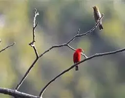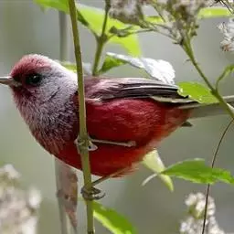 酒红朱雀小型鸟类,体长13~15厘米。雄鸟通体深红色,头部深朱红或棕红色,下背和腰玫瑰红色,…