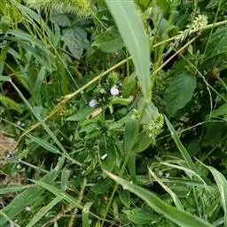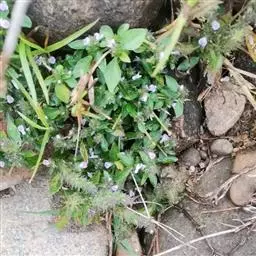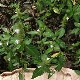 多分枝的草本,高20-50厘米;茎圆柱状,被短硬毛。叶卵形,长2.5-6厘米,顶端短渐尖,基部渐狭而成细柄,全缘,两面被短硬毛。