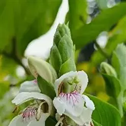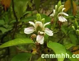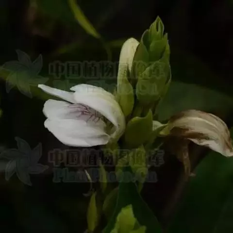 穗状花序紧密,稍弯垂,长6-9厘米;苞片砖红色,长1.2-1.8厘米,被短柔毛;萼白色,长约为冠管的1/4;花冠白色,在喉凸上有红色斑点,长3.2厘米,伸出苞片之外,冠檐深裂至中部,被短柔毛。蒴果未见。