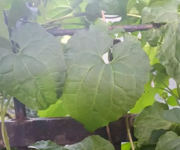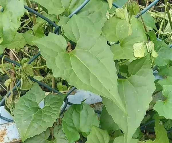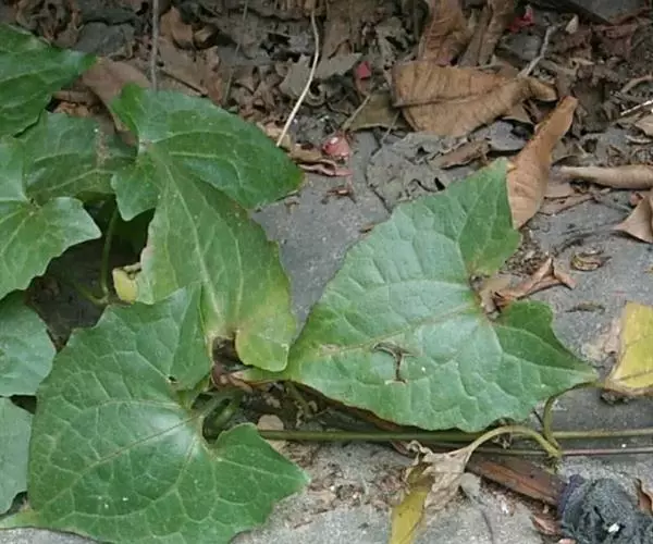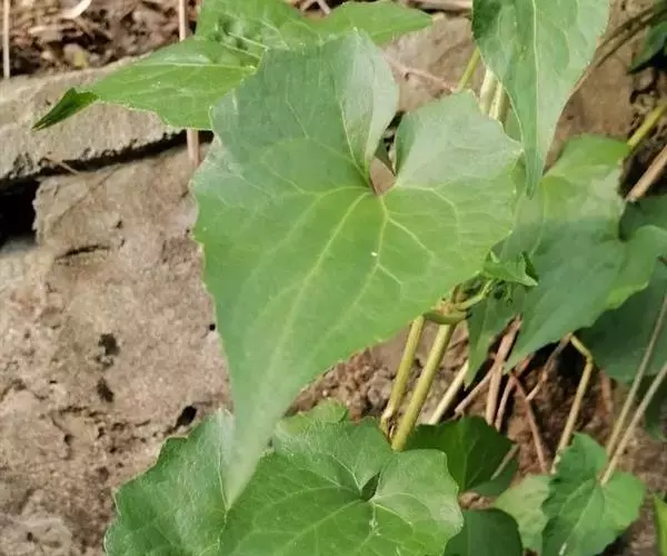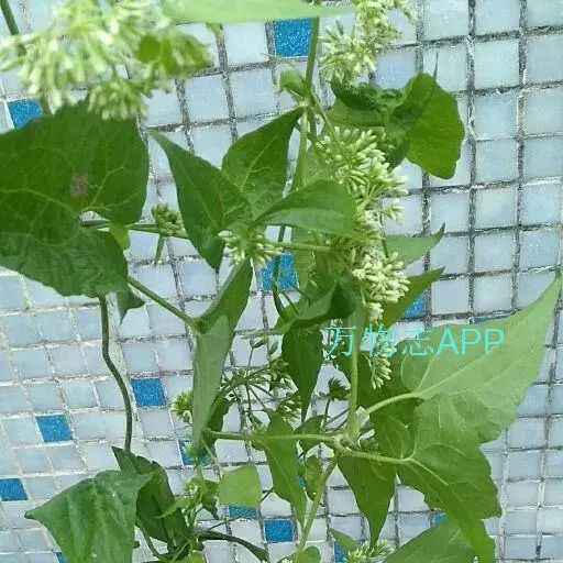 薇甘菊为多年生草质或木质藤本,茎细长,匍匐或攀缘,多分枝,被短柔毛或近无毛,幼时绿色,近圆柱形,老茎淡褐色,具多条肋纹。茎中部叶三角状卵形至卵形,长4.0-13.0厘米,宽2.0-9.0厘米,基部心形,偶近戟形,先端渐尖,边缘具数个粗齿或浅波状圆锯齿,两面无毛,基出3-7脉;叶柄长2.0-8.0厘米;上部的叶渐小,叶柄亦短。