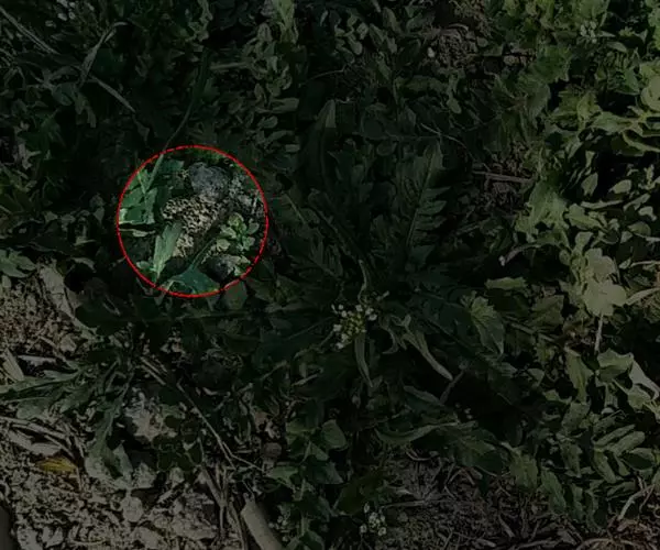 薇甘菊覆盖度61%以上、平均厚层大于35厘米以上的界定为重度覆盖非耕地。用灭薇净制剂200-320ml/亩,加水量为160L/亩(配成500-800倍浓度液),喷枪工作压力为4-6Mpa,在5-6米射程以内,采用枝叶扫射处理和喷湿根部地面,喷枪伸入盖层内上下左右转动射药,使内层及土壤充分接触施药,必要时结合人工防除处理。
