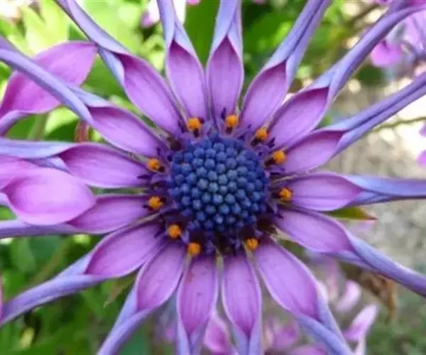 蓝眼菊(Osteospermum)是菊科金盏花族下的一个属。 蓝眼菊原先是属于异果菊属,其后从中分裂出来,当中只有一年生的物种仍在此属中,而多年生的则纳入蓝眼菊属中。蓝眼菊属是核果菊属的近亲。蓝眼菊的学名是来自希腊文的“骨头”及拉丁文的“种子”。又名非洲雏菊、南非雏菊、海角雏菊及蓝眼雏菊等。蓝眼菊属下有约50个物种,都是产于非洲,其中35个于南部非洲及阿拉伯。它们是半耐寒性的植物,故此野生的蓝眼菊不能抵御冬天。