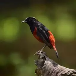 朱鹂:中等鸟类,体长23-28厘米。雄鸟绛紫红色,头、上胸及翼黑色。雌鸟上背及背部深灰色,…
