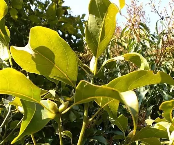 黄樟 常绿乔木,树干通直,高10-20米,胸径达40厘米以上;树皮暗灰褐色,上部为灰黄 色,深纵裂,小片剥落,厚约3-5毫米,内皮带红色,具有樟脑气味。枝条粗壮,圆柱形,绿褐色,小枝具棱角,灰绿色,无毛。芽卵形,鳞片近圆形,被绢状毛。