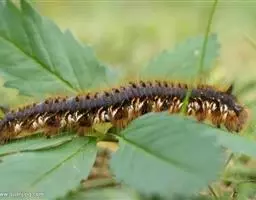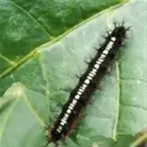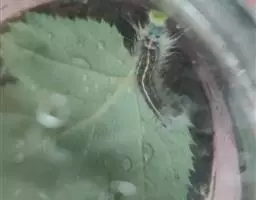 天幕毛虫幼虫 一年发生1代,以小幼虫在卵壳内越冬。春季花木发芽时,幼虫钻出卵壳,为害嫩叶,以后转移到枝杈处吐丝张网,1-4龄幼虫白天群集在网幕中,晚间出来取食叶片,5龄幼虫离开网幕分散到全树暴食叶片,5月中、下旬陆续老熟于叶间杂草丛中结茧化蛹。6、7月为成虫盛发期,羽化成虫晚间活动,产卵于当年生小枝上,幼虫胚胎发育完成后不出卵壳即越冬。
