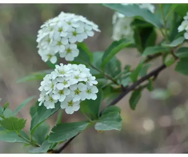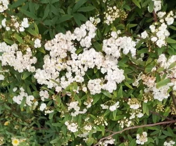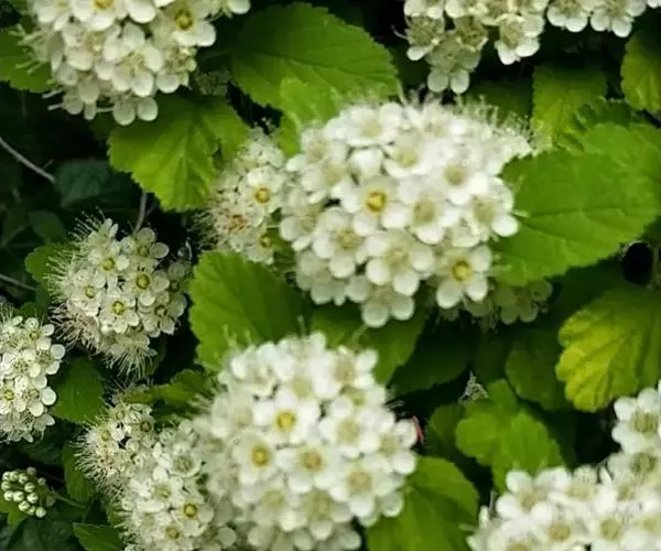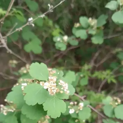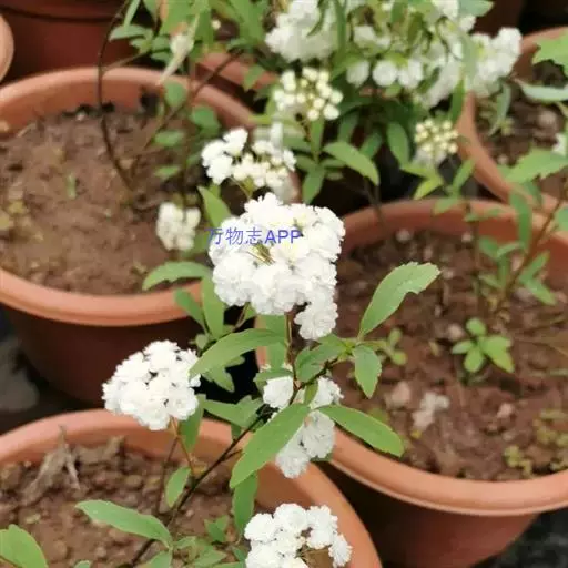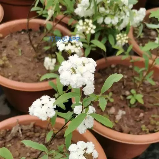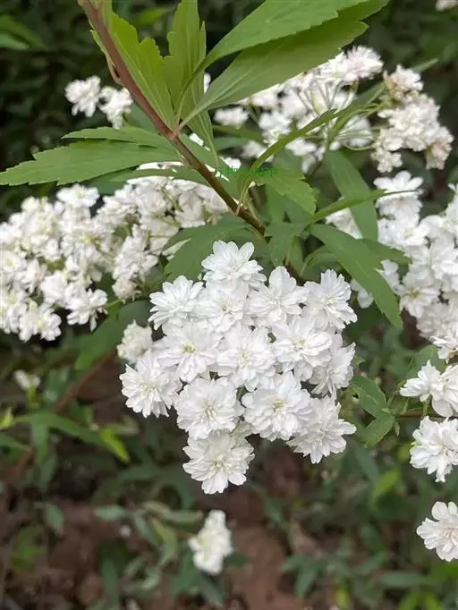 麻叶绣线菊(学名:Spiraea cantoniensis Lour.):蔷薇科、绣线菊属灌木,高可达1.5米;小枝细瘦,冬芽小,卵形,叶片菱状披针形至菱状长圆形,上面深绿色,下面灰蓝色,两面无毛,叶柄无毛。伞形花序具多数花朵;苞片线形,萼筒钟状,萼片三角形或卵状三角形,花瓣近圆形或倒卵形,白色;花盘由大小不等的近圆形裂片组成,子房近无毛,蓇葖果直立开张,花柱顶生,4-5月开花,7-9月结果。