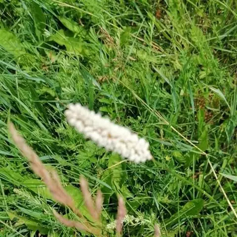 拳参,又名:拳蓼,拉丁学名:Polygonum bistorta L. 属蓼目,蓼科多年生草本,高50~90厘米。根茎肥厚扭曲,外皮紫红色。茎直立,单一或数茎丛生,不分枝。根生叶丛生,有长柄;叶片椭圆形至卵状披针形,长12~18厘米,宽2.5~6厘米,先端短尖或钝,基部心形或圆形。下延成翅状,边缘外卷,无毛,或有时下面疏被柔毛。茎生叶较小,近乎无柄,叶片披针形至线形;托叶鞘膜质,管状,长达3厘米。生山坡草地、山顶草甸,海拔800-3000米。分布于中国、日本、蒙古、哈萨克斯坦、俄罗斯。