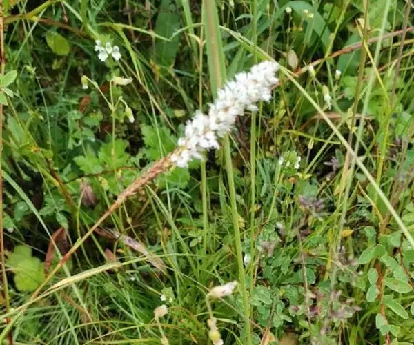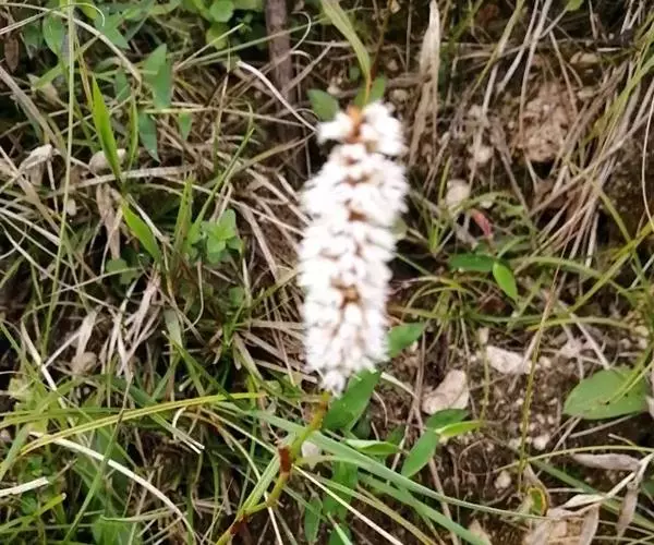 总状花序呈穗状, 拳参 顶生,长4-9厘米,直径0.8-1.2厘米,紧密;苞片卵形,顶端渐尖,膜质,淡褐色,中脉明显,每苞片内含3-4朵花;花梗细弱,开展,长5-7毫米,比苞片长;花被5深裂,白色或淡红色,花被片椭圆形,长2-3毫米;雄蕊8,花柱3,柱头头状。