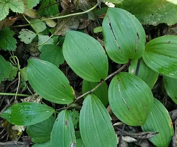 多年生草本,植株高30~60厘米;根状茎横走,多为圆柱状,粗6~10毫米,肉质肥厚,有多数须根,有时具膨大结节。茎单生,直立,中部以上或仅上部具粗伏毛,具4~9叶,下部有鳞片。叶纸质,互生,着生于茎的上半部,通常5~7片,卵状椭圆形、椭圆形或矩圆形,长6~15厘米,宽3~7厘米,先端近短渐尖,两面疏生粗毛或近无毛,具短柄。圆锥花序顶生,花序长3~6厘米,有毛,具10~20余朵花;花单生,白色;花梗长2~6毫米;花被片分离或仅基部稍合生,矩圆形或矩圆状倒卵形,长约3毫米,花被6片,椭圆形;雄蕊6根,长2~2.5毫米,基部贴生于花被片上,花药小;花柱长0.5~1毫米,与子房近等长,柱头几不裂。子房3室,每室有胚珠1颗。浆果近球形,直径5~6毫米,初绿色,有紫斑,熟时红色,具1~2颗种子。鹿药种子坚硬,种皮土黄色,多为不规则的圆形、扁圆形,种子长3.5~5.0mm,宽3.2~4.5mm,干燥种子千粒重26.98~30.63g,花期5~6月,果期8~9月。