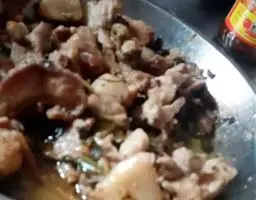 3、加上料酒、葱姜,放上盐和酱油,再翻炒;