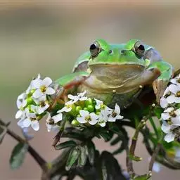 树蛙是树蛙科两栖动物的统称。树蛙体中等或大,一般雄蛙吻端斜尖,雌蛙吻端高钝;舌后端缺刻深,梨骨齿发达,…
