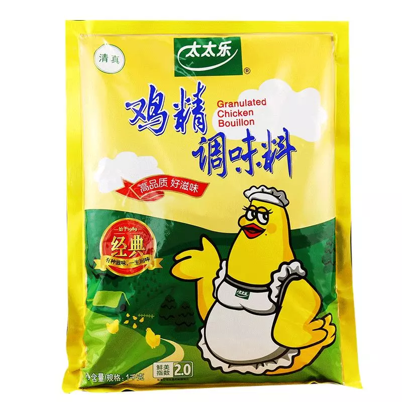 1984年 太太乐创始人荣耀中先生开发了以鸡肉为基料的第三代复合鲜味料,取名鸡精,意为“鲜鸡之精华”