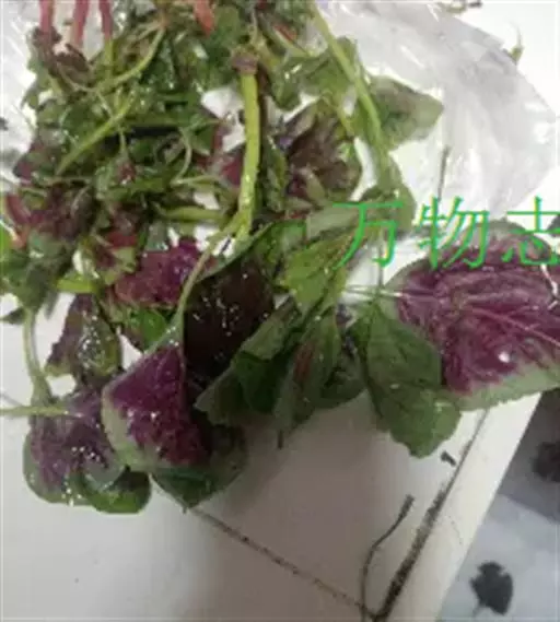 直立或上升草本。茎通常紫色,四稜形,被微柔毛,具分枝。叶膜质,其大小、形状及色泽变异很大,通常卵圆形,长4-12.5厘米,宽2.5-9厘米,先端钝至短渐尖,基部宽楔形至圆形,边缘具圆齿状锯齿或圆齿,色泽多样,有黄、暗红、紫色及绿色,两面被微柔毛,下面常散布红褐色腺点,侧脉4-5对,斜上升,与中脉两面微突出;叶柄伸长,长1-5厘米,扁平,被微柔毛。轮伞花序多花,花时径约1.5厘米,多数密集排列成长5-10(25)厘米、宽3-5(-8)厘米的简单或分枝的圆锥花序;花梗长约2毫米,与序轴被微柔毛;苞片宽卵圆形,长2-3毫米,先端尾尖,被微柔毛及腺点,脱落。花萼钟形,10脉,开花时长2-3毫米,外被短硬毛及腺点,果时花萼增大,长达7毫米,萼檐二唇形,上唇3裂,中裂片宽卵圆形,十分增大,果时外反,侧裂片短小,卵圆形,约为中裂片之半,下唇呈长方形,较长,2裂片高度靠合,先端具2齿,齿披针形。花冠浅紫至紫或蓝色,长8-13毫米,外被微柔毛,冠筒骤然下弯,至喉部增大至2.5毫米,冠檐二唇形,上唇短,直立,4裂,下唇延长,内凹,舟形。雄蕊4,内藏,花丝在中部以下合生成鞘状。花柱超出雄蕊,伸出,先端相等2浅裂。花盘前方膨大。小坚果宽卵圆形或圆形,压扁,褐色,具光泽,长1-1.2毫米。花期7月。