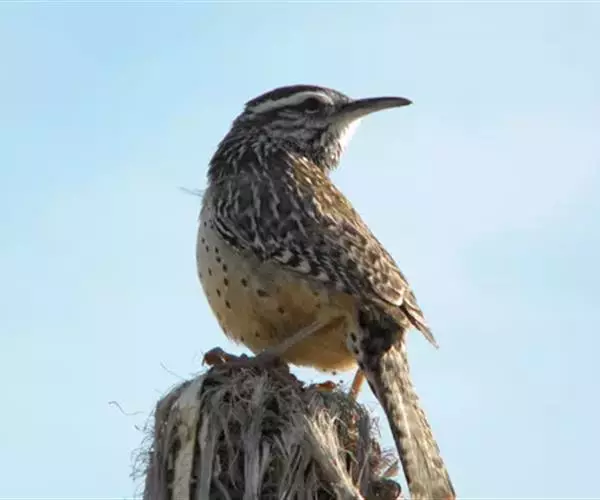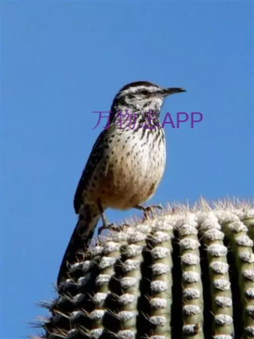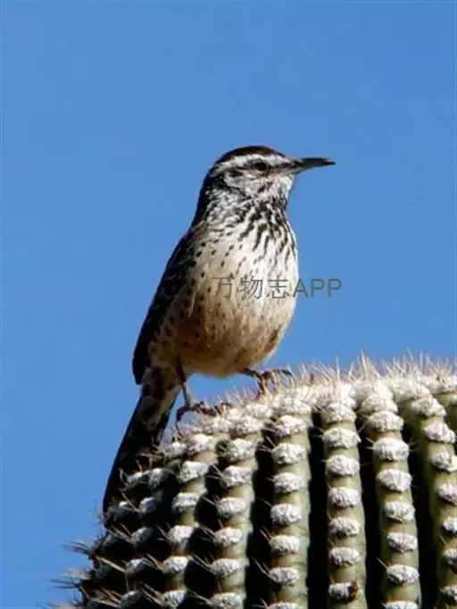 5、棕曲嘴鹪鹩墨西哥高原亚种(学名:Campylorhynchus brunneicapillus guttatus)