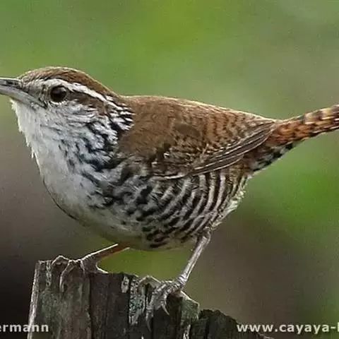 2、棕曲嘴鹪鹩指名亚种(学名:Campylorhynchus brunneicapillus brunneicapillus)