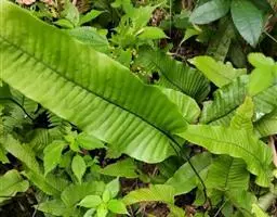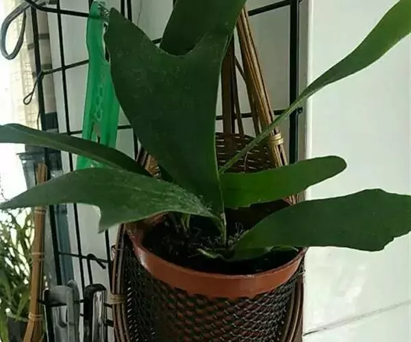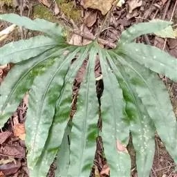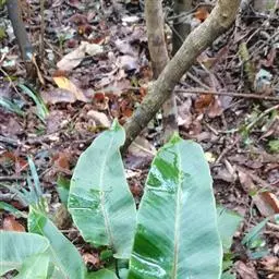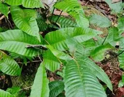 附生植物。根状茎肉质,短而横卧,密被鳞片;鳞片淡棕色或灰白色,中间深褐色,坚硬,线形,长10毫米,宽4毫米。叶2列,二型;基生不育叶(腐殖叶)宿存,厚革质,下部肉质,厚达1厘米,上部薄,直立,无柄,贴生于树干上,长达40厘米,长宽近相等,先端截形,不整齐,3-5次叉裂,裂片近等长,圆钝或尖头,全缘,主脉两面隆起,叶脉不明显,两面疏被星状毛,初时绿色,不久枯萎,褐色。