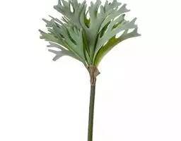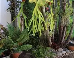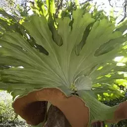 鹿角蕨是观赏蕨中姿态最奇特的一类,属附生性观赏蕨。鹿角蕨可布置于公园、植物园、商店、居室、窗台等地方的装饰,贴生于古老枯木或装饰于吊盆,作悬吊式或镶挂式布置,是室内立体绿化的好材料。