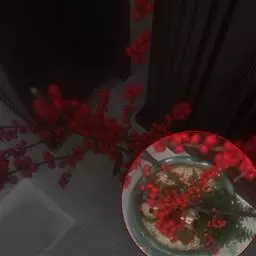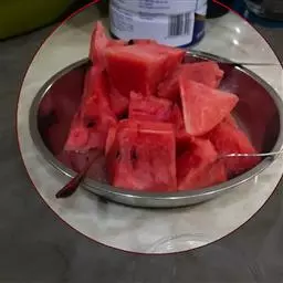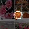 ①鲜花入杯中倒扣在盘中间,鱿鱼、海参、虾肉、鲜贝、熟鸡块、鱼片、冬笋用沸水焯一下捞出,码放在鲜花周围;