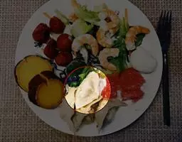 海鲜拼盘是一道四川省的传统名菜,属于川菜系。鲜花入杯中倒扣在盘中间,鱿鱼、海参、虾肉、鲜贝、熟鸡块、鱼片、冬笋用沸水焯一下捞出,码放在鲜花周围。