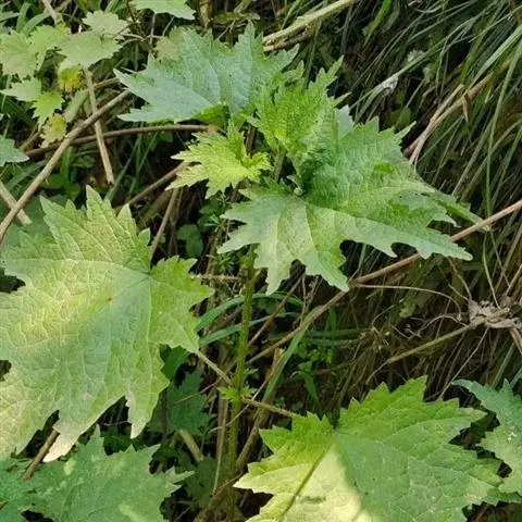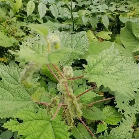 多年生草本,有横走的根状茎,茎自基部多出,高40~100厘米,四棱形,密生刺毛和被微柔毛,分枝少。叶近膜质,宽卵形、椭圆形、五角形或近圆形轮廓,长5~15厘米,宽3~14厘米,先端渐尖或锐尖,基部截形或心形,边缘有5~7对浅裂片或掌状3深裂(此时每裂片又分出2~4对不整齐的小裂片),裂片自下向上逐渐增大,三角形或长圆形,长1~5厘米,先端锐尖或尾状,边缘有数枚不整齐的牙齿状锯齿,上面绿色或深绿色,疏生刺毛和糙伏毛,下面浅绿色,被稍密的短柔毛,在脉上生较密的短柔毛和刺毛,钟乳体杆状、稀近点状,基出脉5条,上面一对伸达中上部裂齿尖,侧脉3~6对;叶柄长2~8厘米,密生刺毛和微柔毛;托叶草质,绿色,2枚在叶柄间合生,宽矩圆状卵形至矩圆形,长10~20毫米,先端钝圆,被微柔毛和钟乳体,有纵肋10~12条。