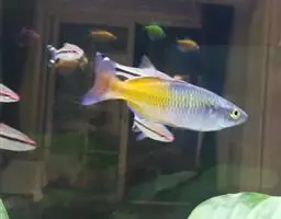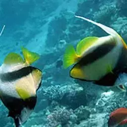 马夫鱼。成鱼体甚侧扁,背缘高而隆起,略呈三角形。背鳍鳍棘11根,第四鳍棘延长呈鞭状,鳍膜亦随之延长…