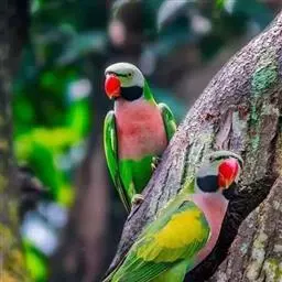 可用大的树干掏一个直径14厘米的洞代替巢,巢的大小为长30厘米、宽14厘米、高14厘米,开口在巢洞的上部。在发情期,雄鸟追逐雌鸟,形影不离,依偎在栖杠上互相点头,交嘴漱食,雄鸟把吃进的食物吐出喂给雌鸟。在孵化期间,亲鸟表现很警觉,对有异常情况表现精神不安,来回跳动。因此,在繁殖期间,应有一个比较安静的环境,防止惊扰,保证亲鸟顺利孵蛋。