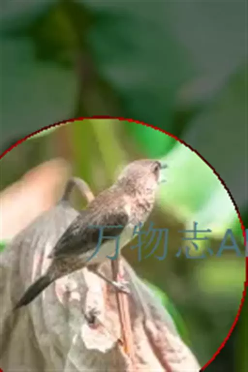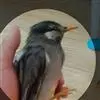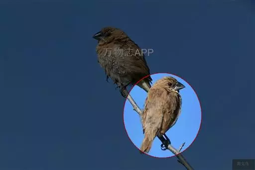 雌鸟和雄鸟大致相似。但仅前额杂有白色,头顶至后颈黑褐色。颏、喉淡棕灰色,上胸黑褐色具棕褐色羽干纹。