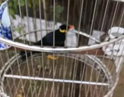 金冠树八哥为椋鸟科树八哥属的鸟类。体长约23厘米,闪辉黑色。特征为具翼斑及颏黄色,脸颊裸露皮肤粉黄色。…